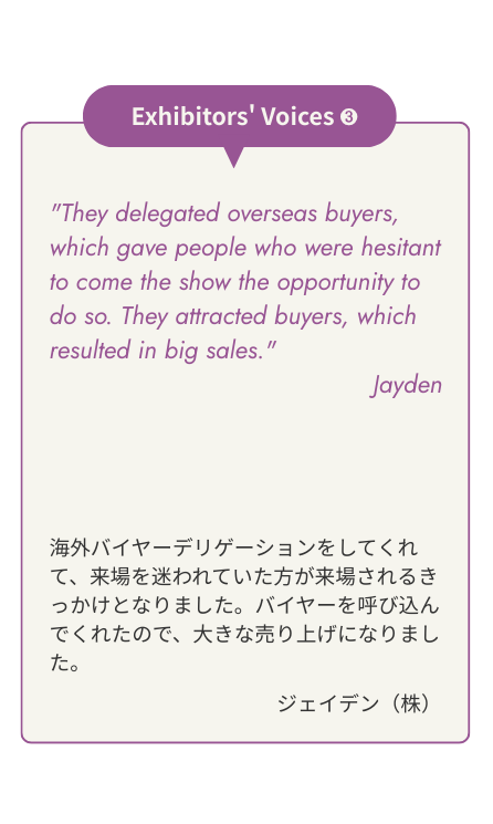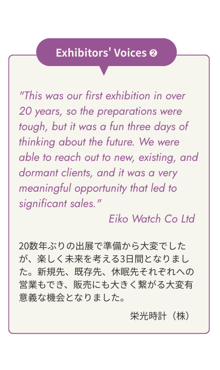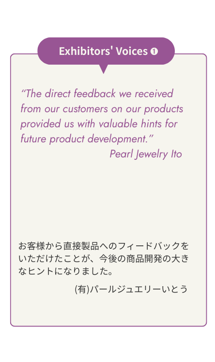 - At Japan Jewellery Fair, everything is designed for B2B success. A large number of attendees are professional buyers and purchasing decision-makers. That means real opportunities for immediate business talks and orders right at the venue. It’s the perfect place for fast, effective, and profitable transactions.